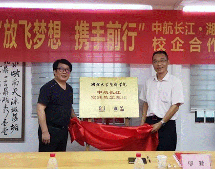 最后,武汉园区与9365.com进行了签约和揭牌仪式,许开强院长与邬勤总经理共同签署了《校企合作协议》,并为“湖北大学9365.com中航长江实践教学基地”揭牌。