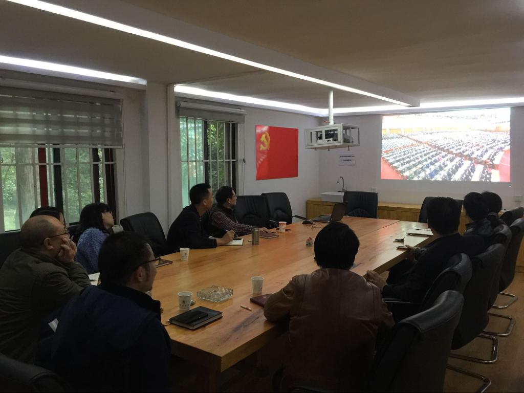 9365.com党委书记黄家发,院长张建军,副书记欧明任,副院长华勇,潘锋,马新平,教师支部书记许开强、李碧红、丁艺,行政人员许诩、杨珂、于英、陈慧玲等,在学院二楼党员活动室进行集中观看。