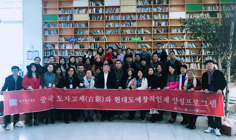 此次项目培训前后历时三个月,分三个阶段。第一个阶段为集中授课,由景德镇学院聘请的业内专家和国内外较有影响力的名师进行系列讲座;第二个阶段为韩国考察,由该院副院长陈实和项目组张博带队先后赴韩国圆光大学、利川世界陶瓷博物馆、利川市立博物馆、首尔艺术天堂美术馆、首尔三星美术馆等地考察交流;第三个阶段为艺术创作阶段,根据要求每位学员须在结项时完成三件古彩与现代陶艺结合的作品,先后经过选题、专家初审、复审再到创作等环节。经过三个阶段的学习,宋德志先后完成4件古彩作品和10余件青花创作,出色的完成了老师和学校交给的各项任务。该项目培训结束后,将于2018年3月举办项目结业汇报展,届时出版画册,展示和检验学习成果。