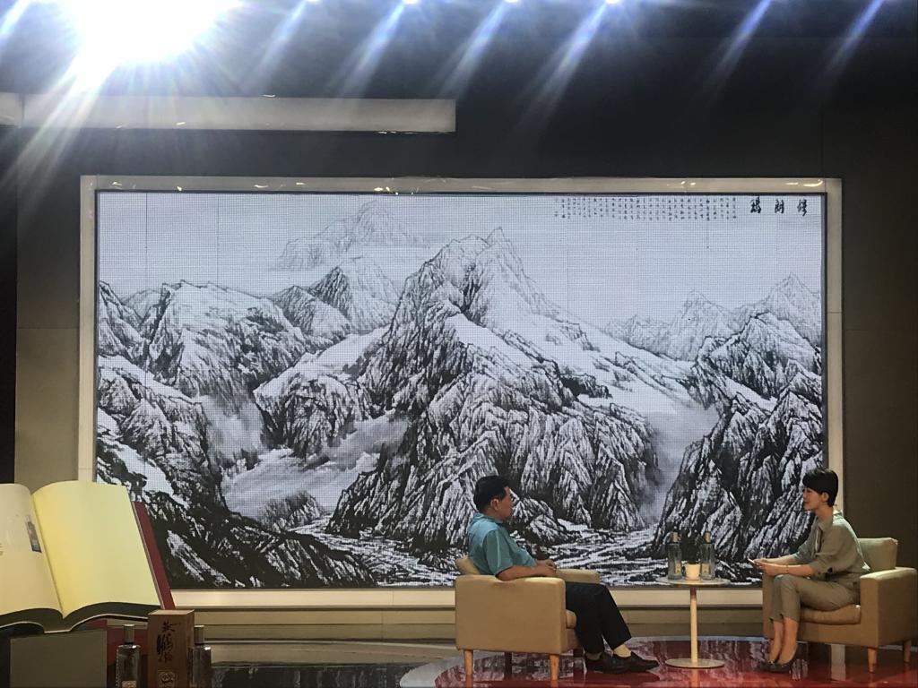 董院长向大家解读“江山万里行—生命的颂歌”中《珠穆朗玛》这幅作品时,他骄傲的说到:“中华民族是一个很幸运的民族,她拥有世界上最高的高原—青藏高原,高原上的最高点便是珠穆朗玛峰。高原上的雪山是生命的起源,融化的雪水融汇成长江、黄河孕育了伟大的中华文明。”并谈到了作品中的用笔用墨,如何将圣洁的雪山通过笔墨传达出来,在单纯中寻找一种纯粹的美,使技法变得简约而不简单。