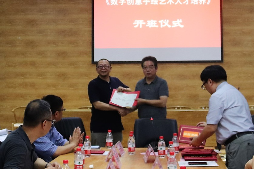 武汉大学翁子扬教授作为授课导师代表,从培训的角度发表讲话,希望此次培训能将各位学员变成一个整体,虽然在培训过程中,艺术创作会有一个磨合期,但是这种磨合期也正是一个积累的过程,量的积累将引起质的改变。也希望大家在创作研究过程中,在课程的基础上能提出自己独特的问题,并在此次课程中解析。